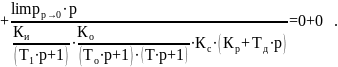 Подставим соответствующие значения передаточных функций, их коэффициентов и найдем предел, получим составляющие статической ошибки по задающему φ3 и возмущающему λ воздействиям. В нашем примере: