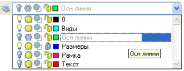 За допомогою цього списку можна змінювати стан шарів та переносити об’єкти з одного шару на інший. Для цього об’єкти потрібно спочатку виділити, а потім у списку обрати потрібний шар.