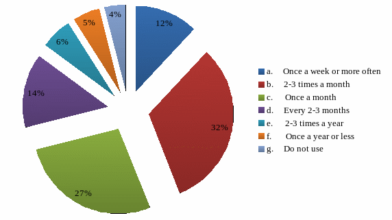 On picture 2.3 we can see the frequency of using honey. The biggest part of respondents use honey 2-3 times a month (31%), the next result was 27%- this is the part of people, who use honey once a month.
