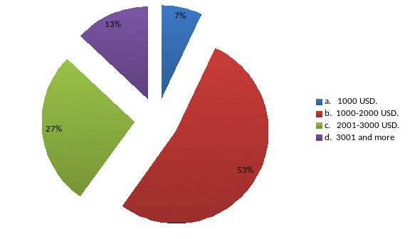 Picture 2.14 shows the income level of potential buyers. We can see that the main group of respondents got the income 1000-2000 USD (53%).