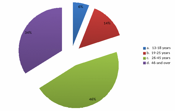 From picture 2.13 we can jump into conclusion that our main audievce is people from 26-45years group(46%) as well as 46-and over years group(34%).