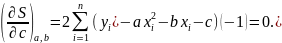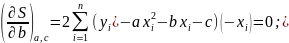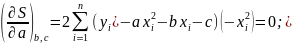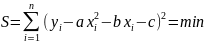 Рівняння параболи має три параметри: a, b, c: y=ax2+bx+c. Для суми квадратів невязок у випадку параболічної залежності отримуємо: