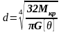 При розрахунку валів на деформацію кручення з умови міцності визначають діаметр d вала:
