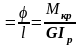 де l – довжина ділянки; G – модуль пружності II роду; Ір – полярний момент інерції площі поперечного перерізу відносно полюса.