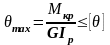 Деформацію кручення можна визначити також відносним кутом закручення θ. Для ділянки зі сталим крутним моментом і жорсткістю:
