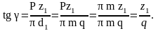 Тангенс кута підйому лінії витка (різьби черв’яка) визначають на ділильному циліндрі черв’яка :