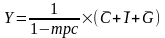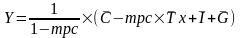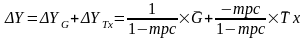 Мультипликатор сбалансированного бюджета равен 1. Изменение Y в точности равно величине G.