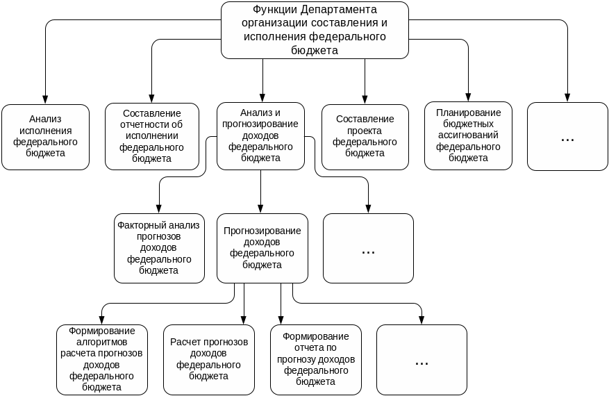 Выделите среди рассмотренных вами работ однородные, объедините их в группы, поименуйте каждую группу работ как функцию. Сформируйте дерево функций для своей предметной области (см. Рисунок 2).