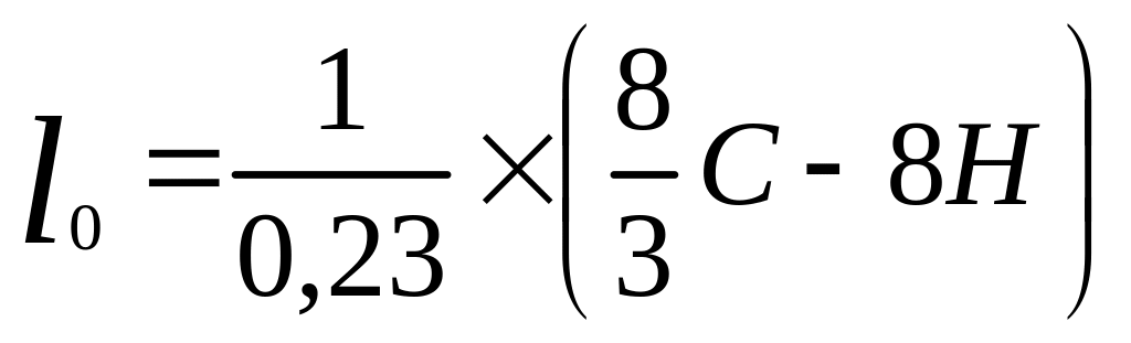 Определяется количество воздуха теоретически необходимое для сгорания 1 кг топлива