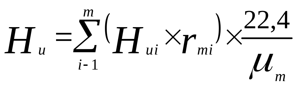 mi – молярная масса i-го компонента, rmi – объемная доля i-го компонента