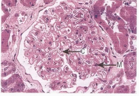 Капиллярлы ілмектер (С) диффузды қалыңдаған, иммунды комплекстердің субэпителиальді жиналуы (М). Қорытынды: мембранозды нефропатия. |