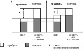 Рис. 3.2. Взаємозв'язок споживчої цінності, ціни і конкурентоспроможності товару