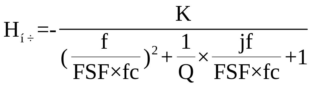 Приравняв обе передаточные характеристики, можно выразить добротность, коэффициент передачи, масштабный коэффициент и частоту среза.