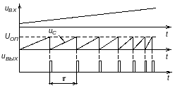 из последнего выражения видно, что чем больше значение входного напряжения, тем выше частота выходного сигнала.