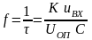 Очевидно, что временной интервал является периодом следования выходных импульсов (длительностью временного интервала разряда конденсатора С пренебрегаем). Частота выходных импульсов при этом может быть определена как