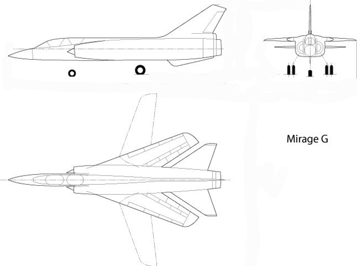 "Мираж" G выполнен по схеме высокоплана с крылом, имеющим аэродинамическую крутку и нулевой угол установки. Угол стреловидности передней кромки поворотных частей крыла может изменяться в пределах 20-70 град.