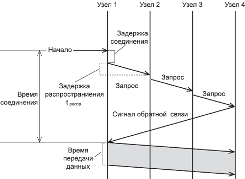 При коммутации каналов коммутационная сеть образует между конечными узлами непрерывный составной физический канал из последовательно соединенных коммутаторами промежуточных канальных участков. Условием того, что несколько физических каналов при последовательном соединении образуют единый физический канал, является равенство скоростей передачи данных в каждом из составляющих физических каналов. Равенство скоростей означает, что коммутаторы такой сети не должны буферизовать передаваемые данные.