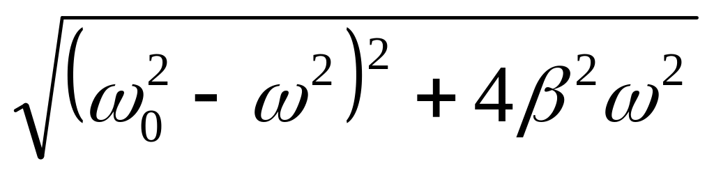 , де т - маса системи, ω0 - власна циклічна частота коливань системи, β - показник затухання, який характеризує силу опору середовища. За якого значення частоти ω періодичної зовнішньої сили настане резонанс, тобто амплітуда стане максимальною?