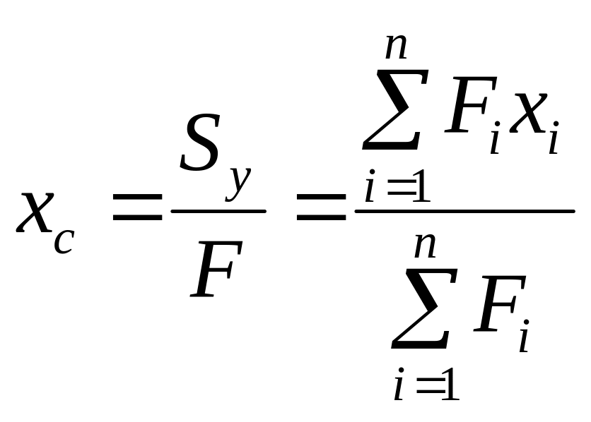 Статический момент площади всей фигуры относительно данной оси определяется как сумма статических моментов каждой части: