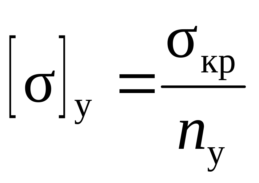 Очевидно, что при практических расчетах на устойчивость стержня нельзя допускать возникновения в нем критического напряжения, а следует принять соответствующий запас устойчивости. Если принять определенное значение коэффициента запаса на устойчивость nу, то допускаемое напряжение на устойчивость []у можно определить следующим образом: