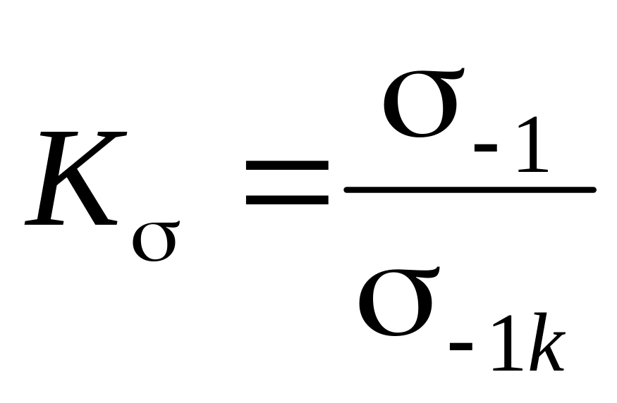 Резкие изменения формы детали, отверстия, выточки, надрезы значительно снижают предел выносливости. Это снижение учитывается эффективным коэффициентом концентрации напряжений, который определяется экспериментальным путем и приводится в справочной литературе. Данный коэффициент показывает во сколько раз предел выносливости при симметричном цикле для образцов без концентрации напряжений 1 превышает предел выносливости для образцов с концентрацией напряжений 1k: