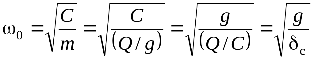 где g ускорение свободного падения, м/с2; с статическое удлинение пружины под действием груза Q.