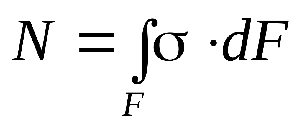 Продольная сила в сечении бруса является равнодействующей нормальных напряжений, действующих в плоскости поперечного сечения: