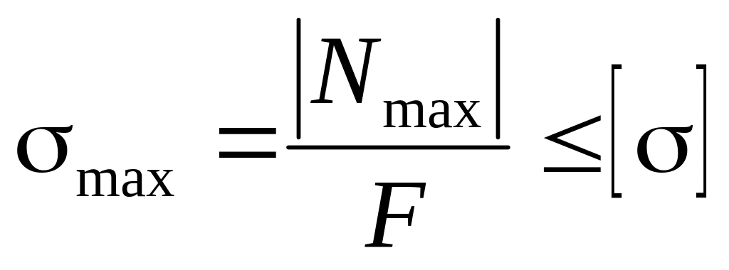 Для обеспечения прочности стержня должно выполняться условие прочности конструкция будет прочной, если максимальное напряжение max ни в одной точке нагруженной конструкции не превышает допускаемой величины [], определяемой свойствами данного материала и условиями работы конструкции, то есть: