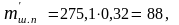 - конструктивну масу частини шатуна, яка віднесена до поршня кг/м2: