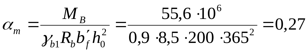 Принятое значение αm = 0,289 соответствует ξ = 0,35 – граничному значению относительной высоты сжатой зоны сечений элементов, рассчитываемых с учетом перераспределения усилий;