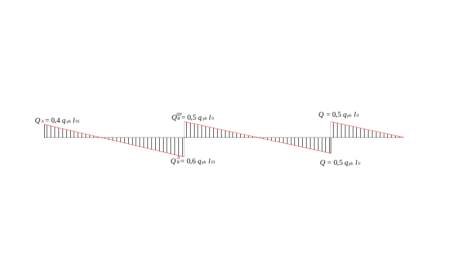 Расчетные значения перерезывающих сил приведены на рис. 2.3.