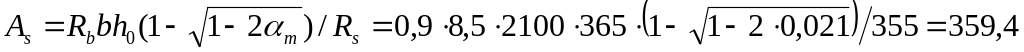 Так как, Мf М1 (и тем более М2), то фактически нейтральная ось во всех пролетных сечениях находится в пределах полки и расчет производится как для прямоугольных сечений с размерами b h0 = b'f h0 = 2100 365 мм.