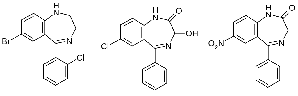 Укажите лекарственные вещества, производные бензодиазепина, которые дают реакцию образования азокрасителя после гидролиза