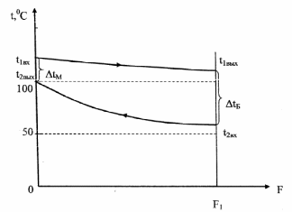 Из рис. 1 следует, что ∆tБ = 70 – 10 = 60 °С, ∆tM = 138 – 90 = 48°С. Теперь по формуле (3) получим: