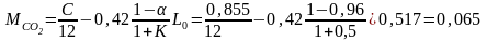 де к-коефіцієнт співвідношення водню і СО у вихлопних газах: к=0,5.