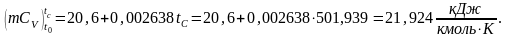 = 0,065· (27,941 + 0,019·501,939 - 5,487 ·10-6 ·501,939)=2,363 кДж/(кмоль·К); (2.23)