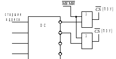 объединение по информационным входам/выходам. Еще объединяются все остальные входы за исключением входа выбор кристалла . Сигналы на этих входах определяют, какой из микросхем нужно включаться в работу (используется дешифратор адреса).