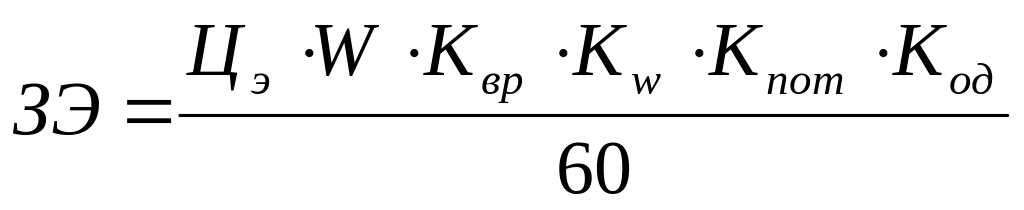 где Цэ – цена одного киловатт-часа электроэнергии в рублях, принимается по фактическим данным завода или средним, действующим на момент выполнения расчетов; [табл. 11, п. 31].