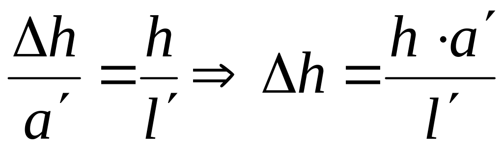 9) найдем Δh пикетной точки над точкой е из подобия треугольников: