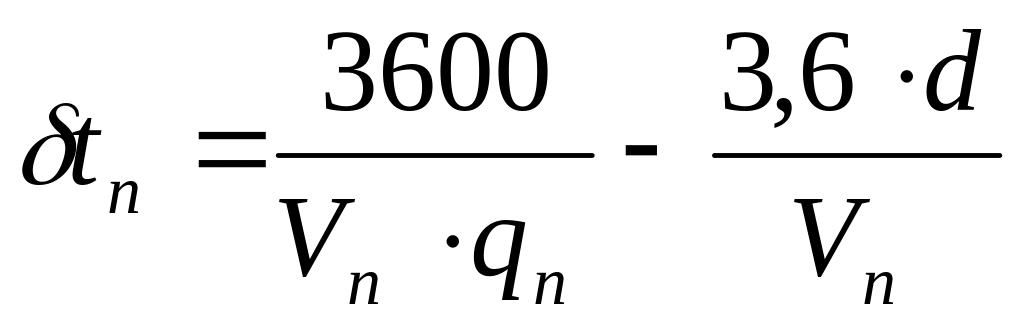 Такой же интервал во времени при прохождении створа группой автомобилей определяют по формуле:
