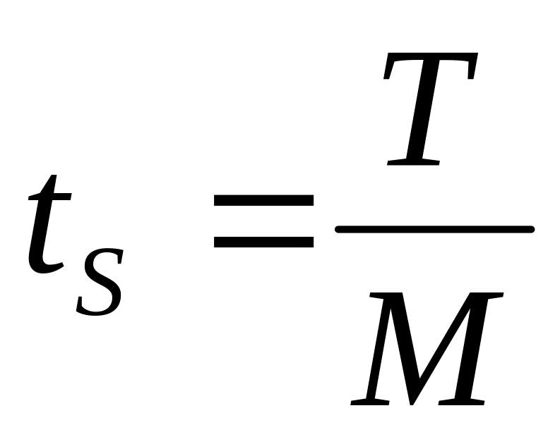 Дискретизация заключается в разбиении сигнала отсчеты по времени, период следования которых tS определяется заданным количеством отсчетов M на период сигнала Т:
