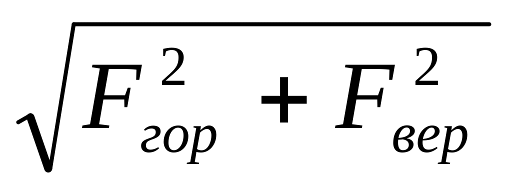 Для определения величин Fгор и Fвер составляют два уравнения равновесия плоской системы сил, соответственно, в горизонтальной и вертикальной плоскостях.