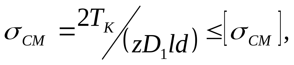 МПа—допускаемое напряжение смятия для