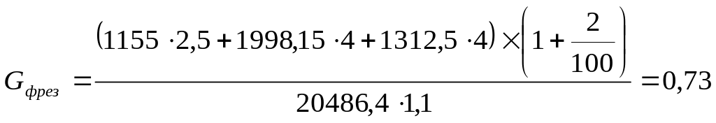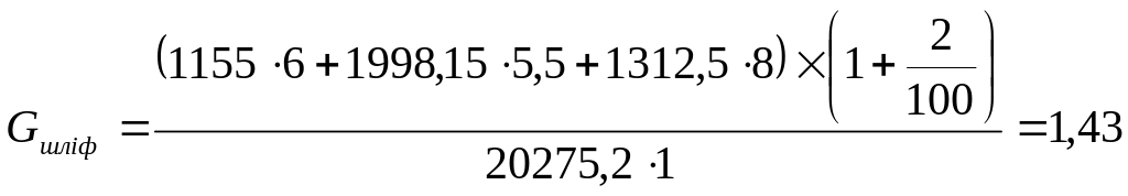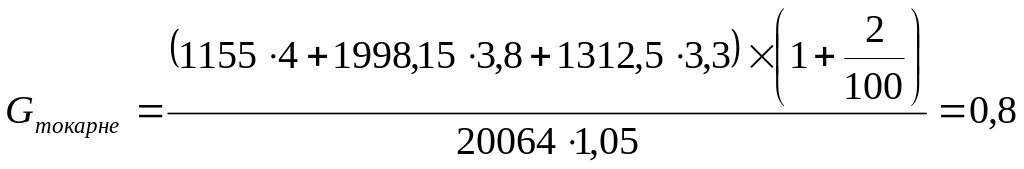 Кількість одиниць обладнання дільниці (Gi) округлюється до найбільшого цілого значення (Gпрi).