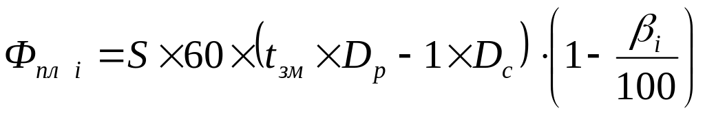 βі – втрати робочого часу на планові ремонти і - го виду устаткування та інші регламентовані перерви, % (від 3 до 10% залежно від віку устаткування).