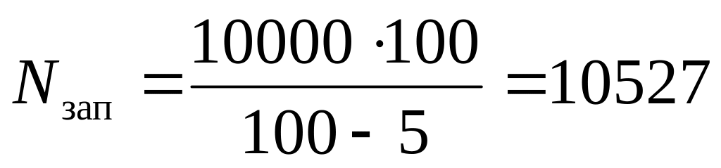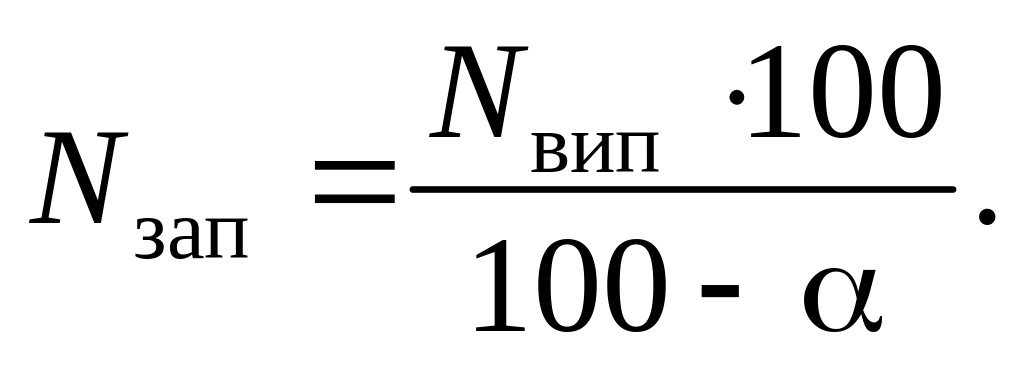 Кількість виробів, що має бути випущена (Nвип), визначається виробничою програмою виготовлення продукції. Якщо за умовами технологічного процесу передбачені втрати виробів (так звані технологічно неминучі втрати (брак) у відсотках — α), тоді розрахунок ведеться за програмою запуску (яка округлюється до більшого цілого значення):