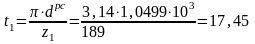 Шаг решетки — t1 = b1t =62,50,795=49,69 мм