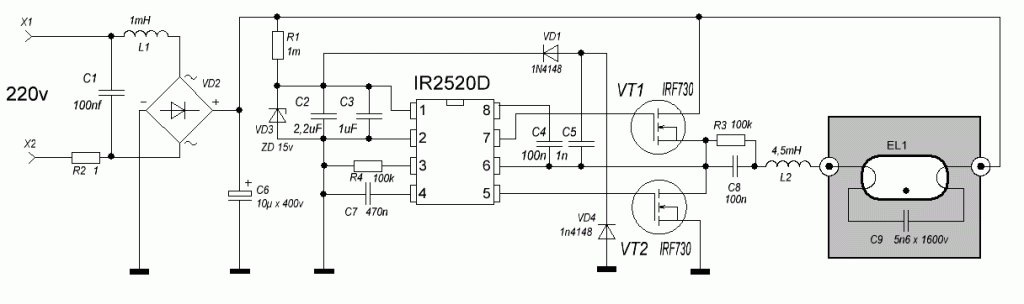 5 . Складність схемотехніки порівнянна з баластом на 2 -х транзисторах , а значить доступна для повторення і починаючому радіоаматори .