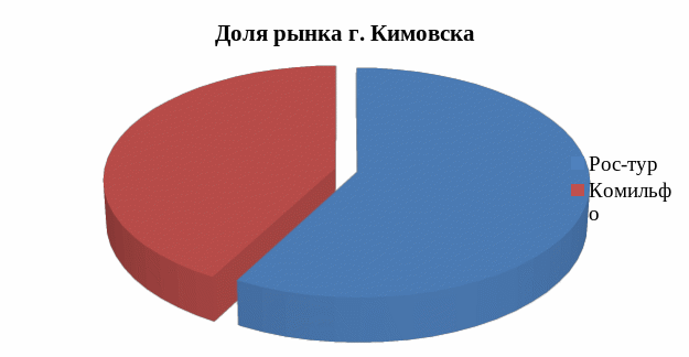Туристический рынок Кимовска не насыщен туристическими фирмами. На данный момент 2 основные фирмы (см. раздел "Конкуренция").