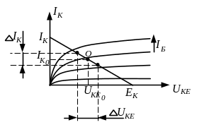 Робоча точка на вихідній ВАХ знаходиться в центрі активної області. Приріст вихідного сигналу відносно координат робочої точки складає 30%-40%.